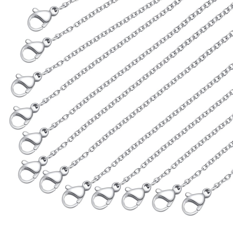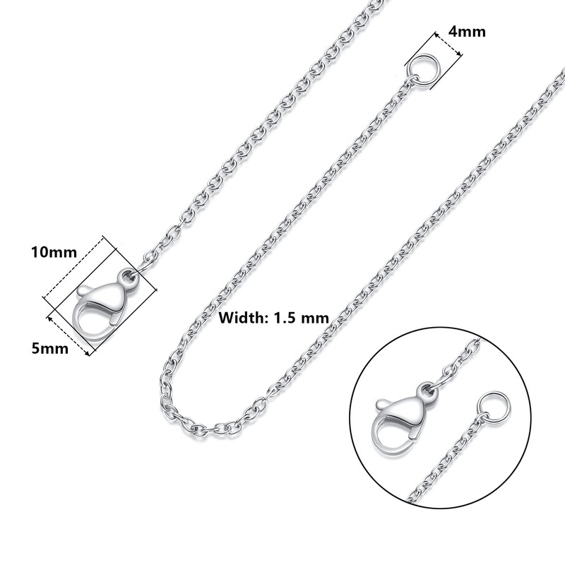 - Silver Necklace Chains in Stainless Steel: Made of high quality 316L stainless steel, 1.5mm thin cable chains with durable lobster clasps; not easy to break, no hair tangling, non tarnish, hypoallergenic