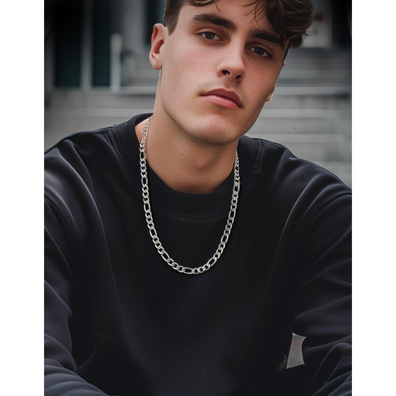• Men's Figaro Chain Necklace-316L stainless steel, 6mm wide, 14 inch length.
