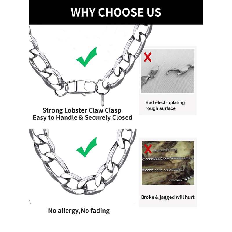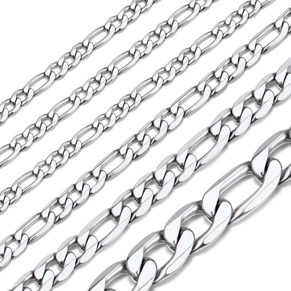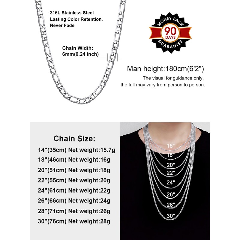 • High Quality--These figaro chains are made of stainless steel/18k real gold plated/black metal plated which is allergy safety, nikel&lead free. non-irritating to skins, comfortable and affordable.