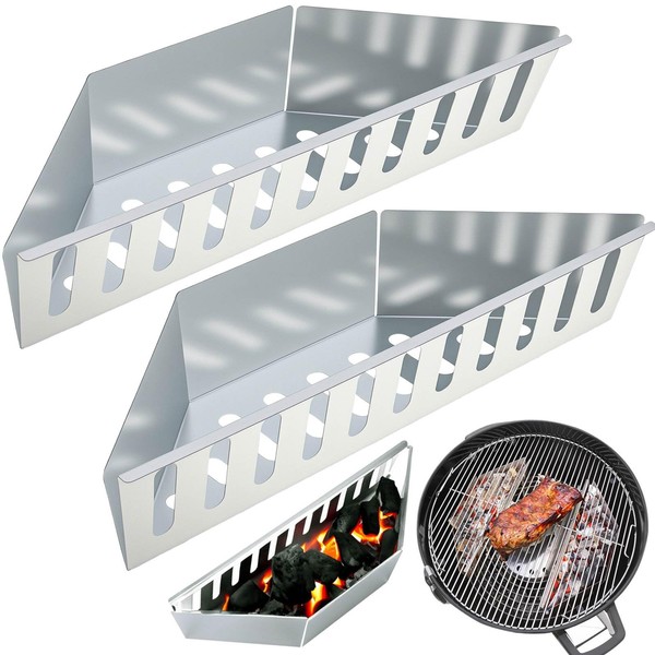 - 🥦Versatile 2-Pack Design for Flexible Grilling: This set includes two independent baskets, giving you the freedom to customize your fire setup—ideal for two-zone cooking. From smoky low-and-slow BBQ to high-heat searing, these adapt to any technique. Compatible with Weber kettles and most charcoal grills.