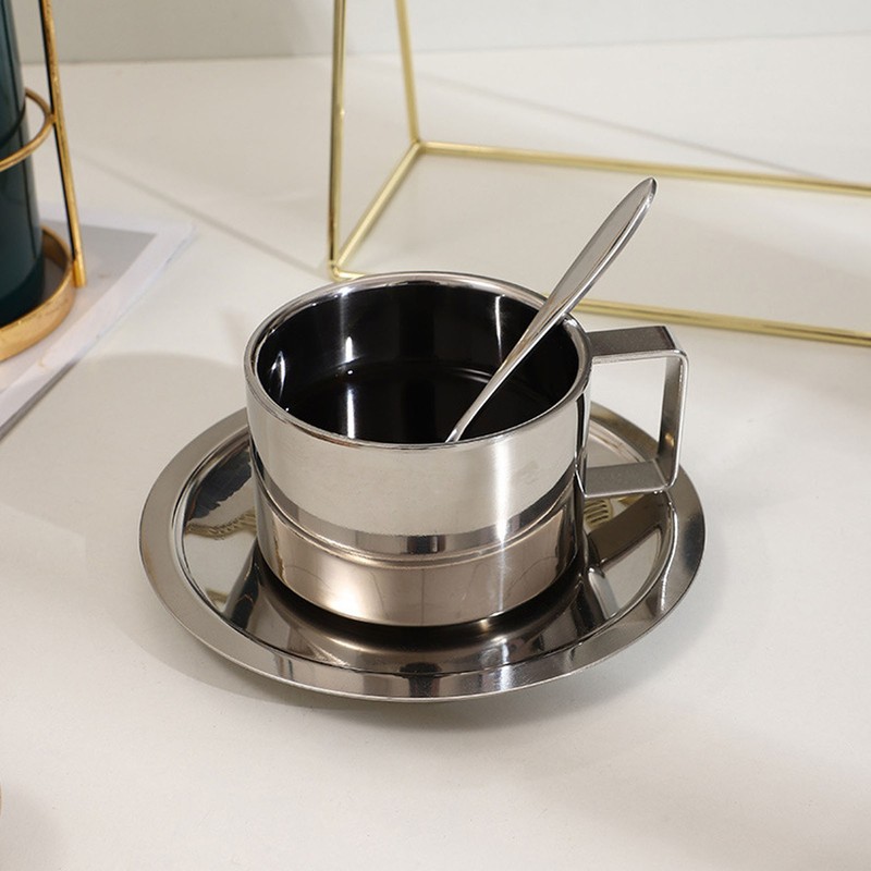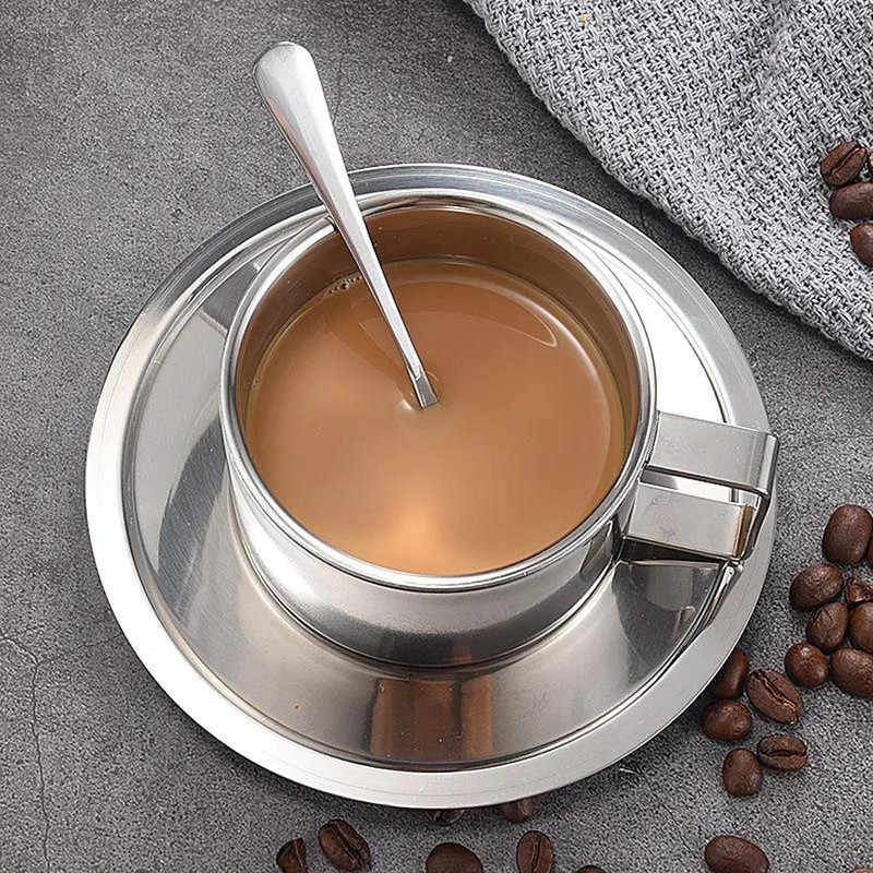 Stainless Steel Coffee Cup Set Double Walled Rustproof Modern Latte Cappuccino Tea Cup for Homes Office Cafe Camping 200ml