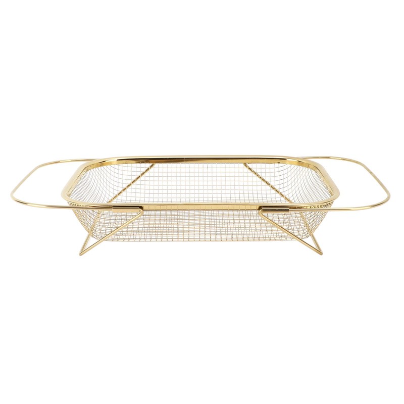 Stainless Steel Colander Strainer Basket Fine Mesh, Expandable Grip Handles Strain, Drain, Rinse Fruits, Vegetables for Sink (Gold)