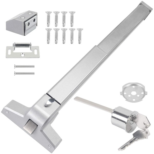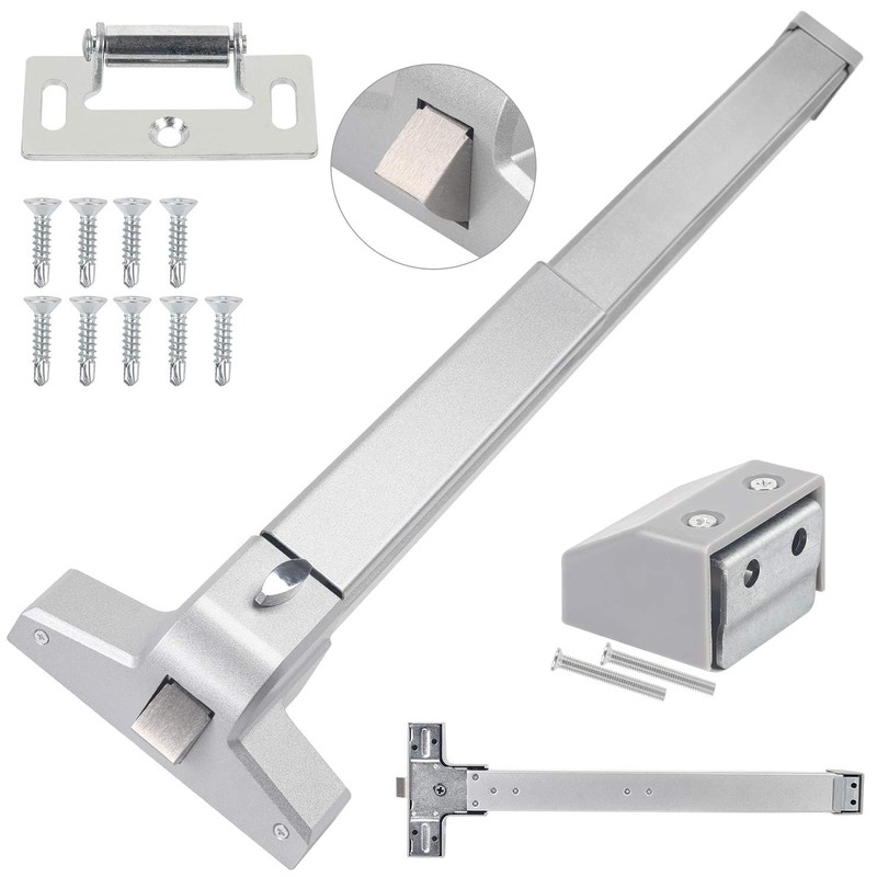 - 【High Compatibility】- This Door Hardware Push Bar Panic Exit Device has an overall size of 28.1 inches and is suitable for doors between 28 inches and 38 inches. It is suitable for any wooden or metal door, but not for glass doors. Easy Installation and able to resist strong external pull. Solid cored spring bolt, resisting sawing and destruction. (Push bar can be cut down to minimum 12" ).