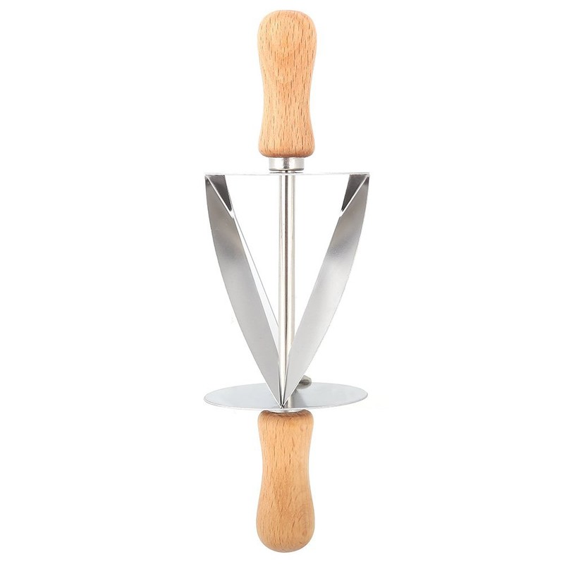 Stainless Steel Croissant Cutlery, Bread Hob Cutting Bread, Dough, Pastry Making Tool with Wooden Handle