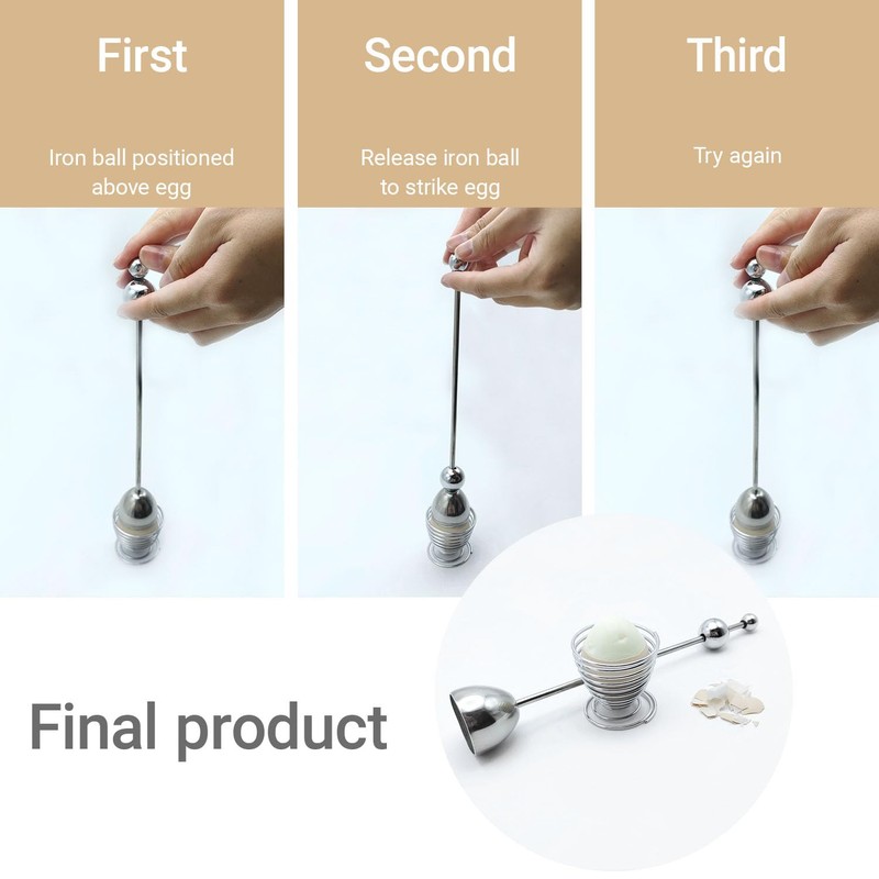 Stainless Steel Egg Opener with Spring-Loaded Egg Holder – Compact Kitchen Tool for One-Handed Cracking, Anti-Slip Design, Easy to Use & Clean
