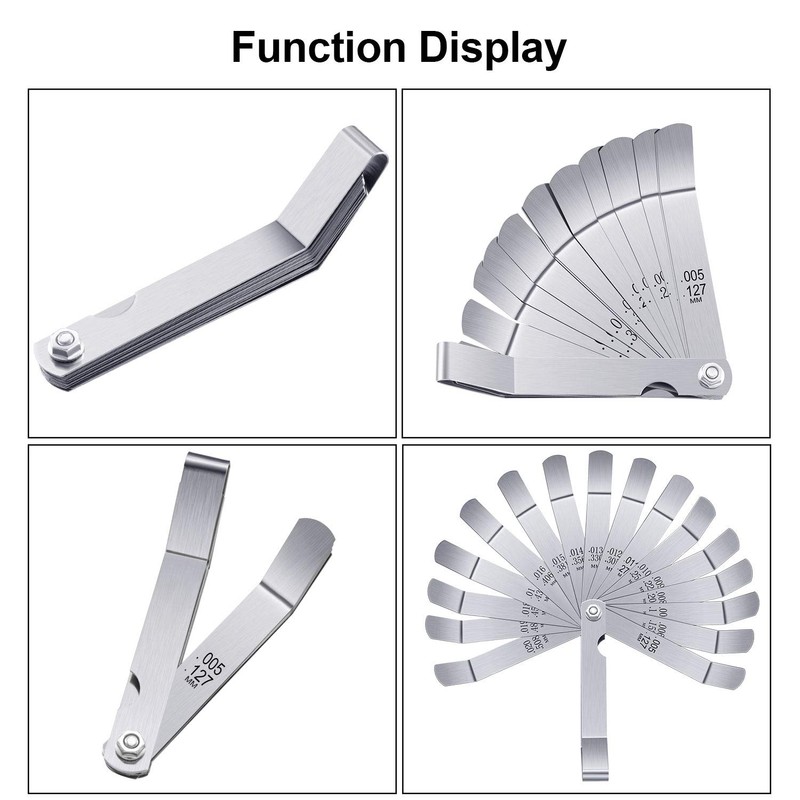 - Feeler gauge set: made of 65 manganese steel, each measuring feeler gauge has 16 blades thickness; Foldable feeler gauges, easy and convenient to take and store