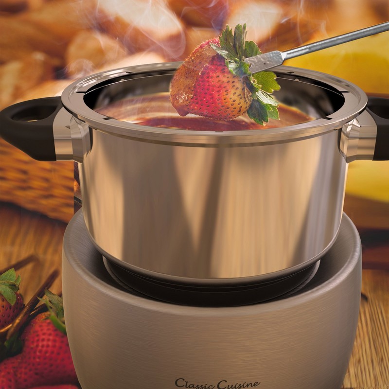 - FUN DINING EXPERIENCE-The Classic Cuisine Fondue Kit is perfect for serving large groups for a unique and entertaining dining experience from the comfort of your own home. The electric melting pot can easily melt cheese, chocolate, or various broths and sauces for dipping bread vegetables, marshmallows, fruits, and more. Makes an ideal housewarming, birthday, and wedding gift!