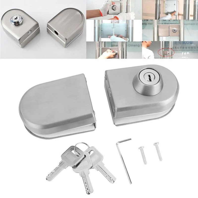 Stainless Steel Glass Door Lock Anti-Theft Security Lock Double Swing Hinged Frameless Push Sliding Gate Lock Apply for Door Thickness 10-12mm/0.39-0.47''