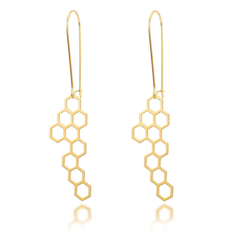 Stainless Steel Gold Plated Cut Out Hexagon Honeycomb Post Dangle Earring (gold)