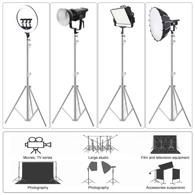 - 【Various Uses】 The portable stainless steel light stand is suitable for indoor and outdoor shooting, and comes with a 1/4 inch to 3/8 inch universal adapter, making the light stand suitable for most photographic equipment.