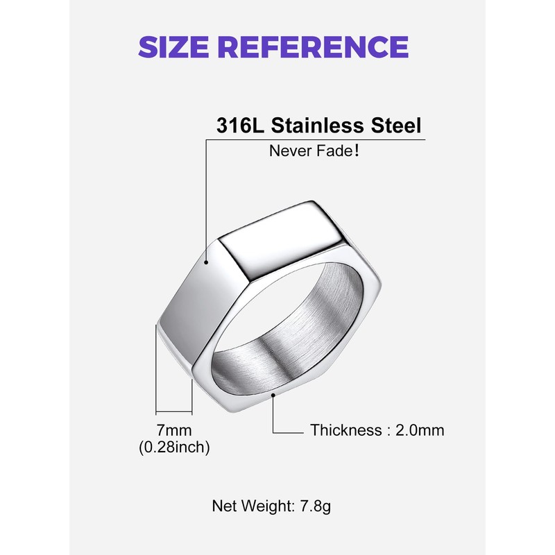 - Hexagon geometric band ring for men and women, offers a brilliant shine due to its impeccable polished finish,wear it alone or stack it with other rings.