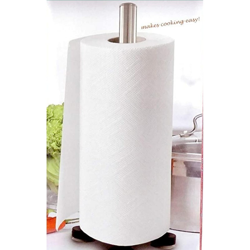- Sleek Deign, Plastic 3 legs Base with Suction cup holds it strong to countertop surface ,holds Standard Size Paper Towel