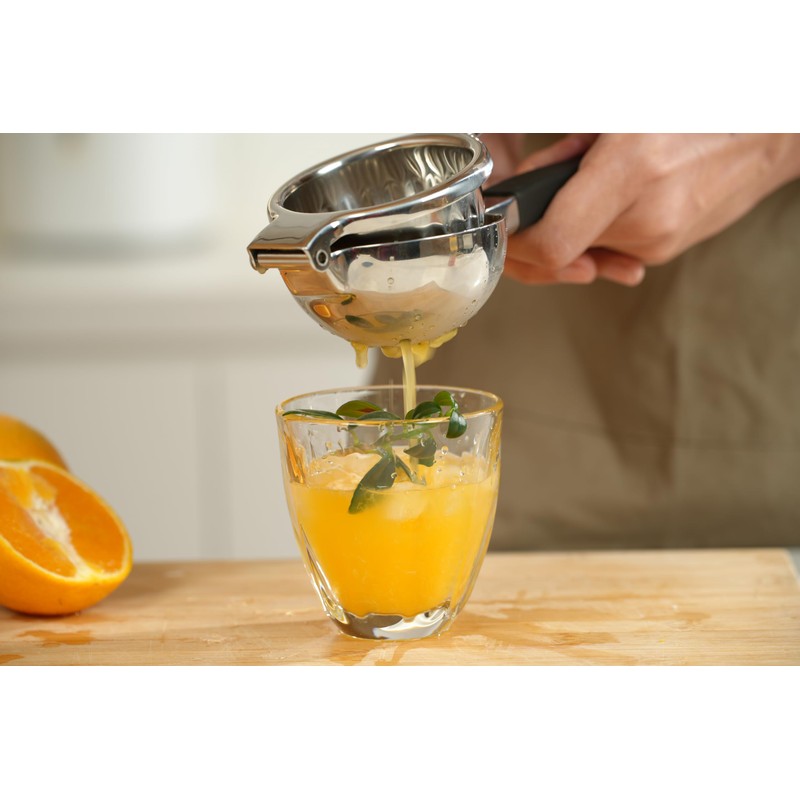 • MULTIFUNCTIONAL: Very handy manual juicer with ergonomically designed handle for a comfortable grip and easy maneuverability. It gives you a firm and stable grip when using our thick silicone bonded handle. Manually squeeze lemons, limes, kiwis, grapes and other citrus fruits to make your favorite juices at home.