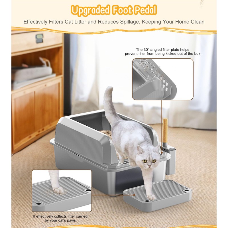 3. Large Capacity Design: This large stainless steel litter box offers plenty of space, making it perfect for single or multi-cat households. It can hold more litter, reducing the frequency of cleaning.