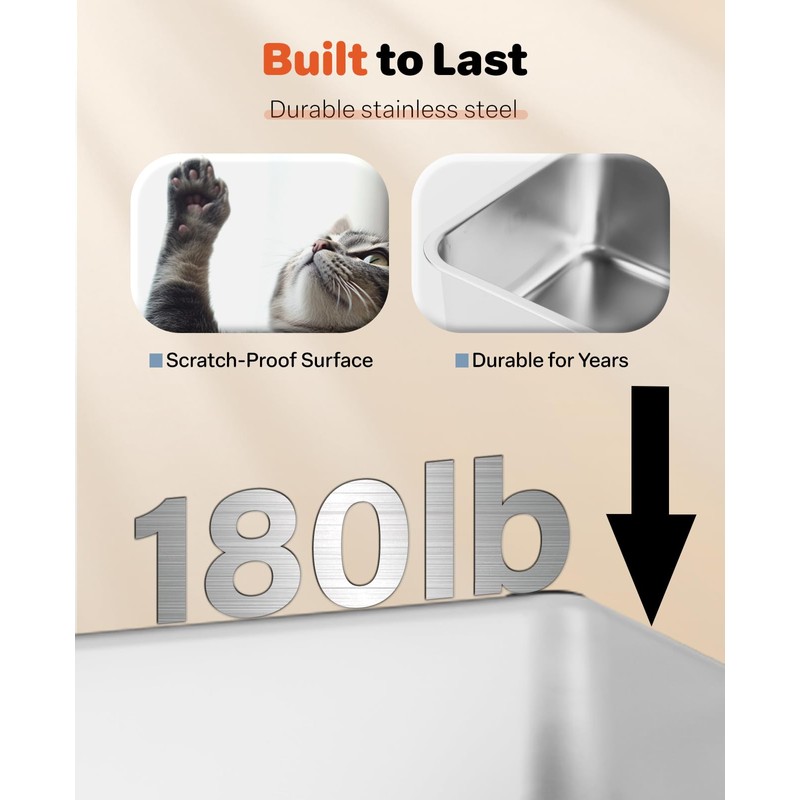 - Durable Stainless Steel Construction: Crafted from high-quality stainless steel, this metal litter box is built to last. Unlike some plastic covered litter boxes that scratch or crack easily, our stainless steel litter box is resistant to deformation, rust, and wear, ensuring long-lasting strength and durability. It’s the perfect choice for both you and your feline friend