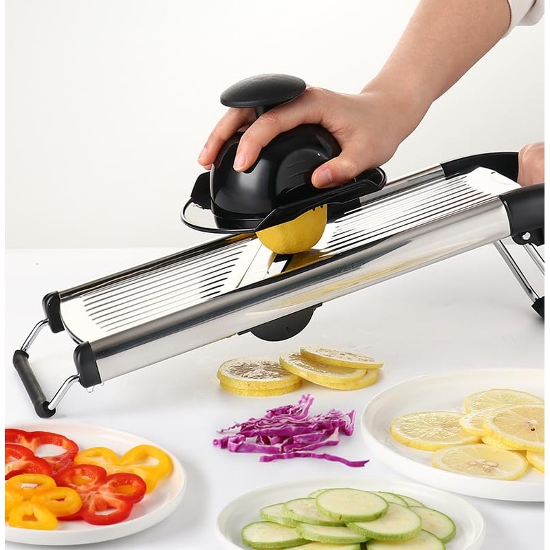 - Versatile Slicer: This mandoline slicer effortlessly slices potatoes, tomatoes, carrots, onions, and more into uniform pieces.