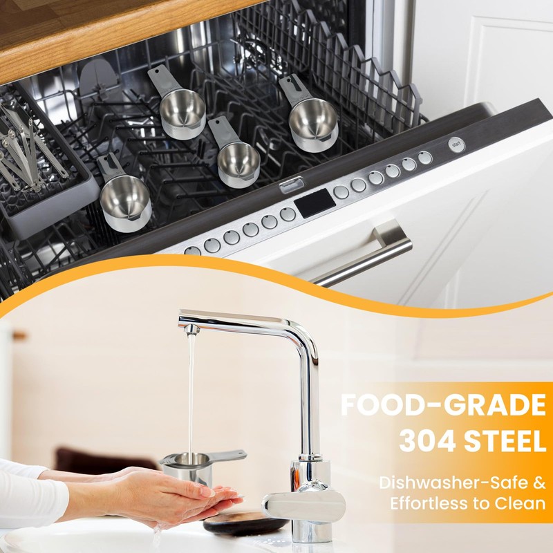 - STURDY & COMFORTABLE DESIGN: Engineered with a mirror-polished finish and smooth, rounded edges, our measuring cups and spoons are safe to use and feel comfortable in hand. The thickened design adds extra sturdiness, preventing any bending or breaking under pressure.