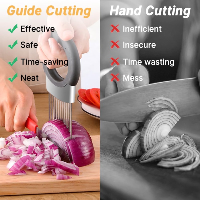 - Stable and durable: Our onion needles are made of high-quality stainless steel to ensure durability and hygiene, durable and deformation-free, always super sharp and can come into contact with food directly.