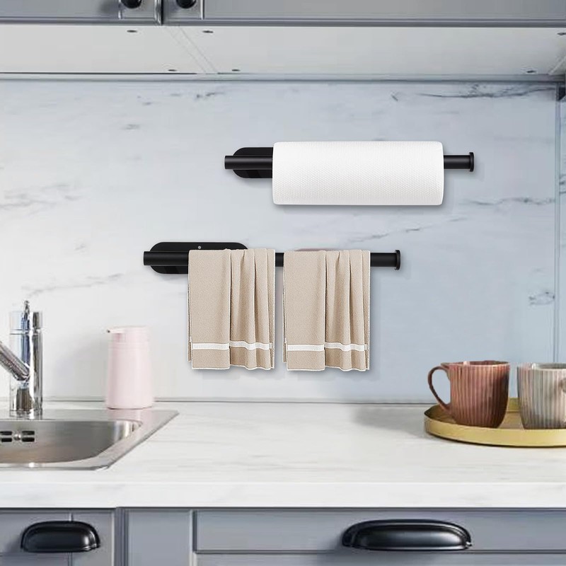Stainless Steel Paper Towel Holder for Kitchen Loose Paper Towels - Self Adherent Under Cabinet with Adhesive and Screw Options (2, Black)