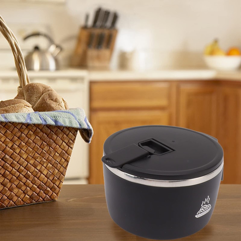 Stainless Steel Pasta Bowl 900ml Instant Noodle Bowl Double Layer Hollow Insulation with Lid (Black)
