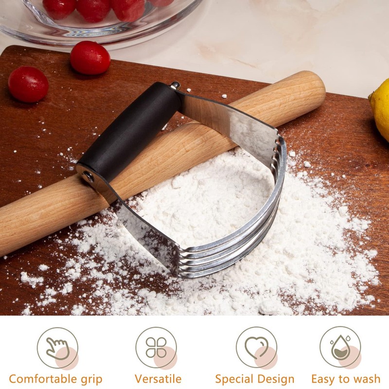 - Five sheets: the stainless steel dough blender is made of 5 stainless steel blades to mix, blend and cut butter into dry ingredients. Used by professional bakers to achieve the best results for baked goods.