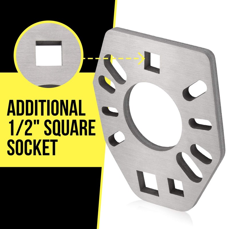 - Additional 1/2" Square Socket -- Other yoke flange wrenches only have one and round out over time. The problem is, for tight spaces, you might need multiple. To address this, we added an extra 1/2" square socket. Plus, our stainless steel will prevent any rounding. You'll be able to utilize your pinion depth setting tool for years