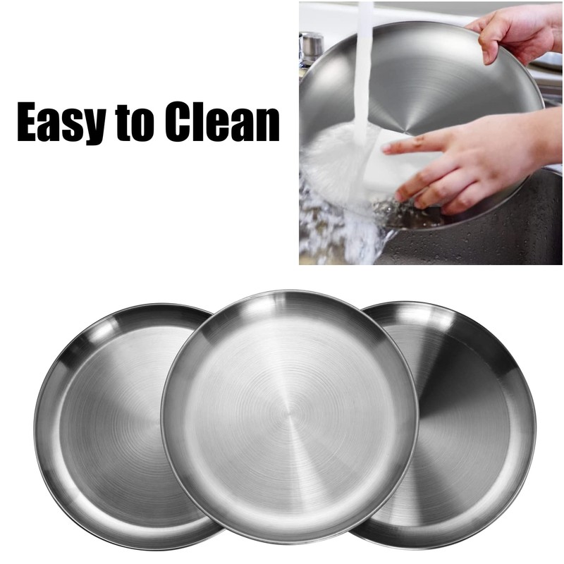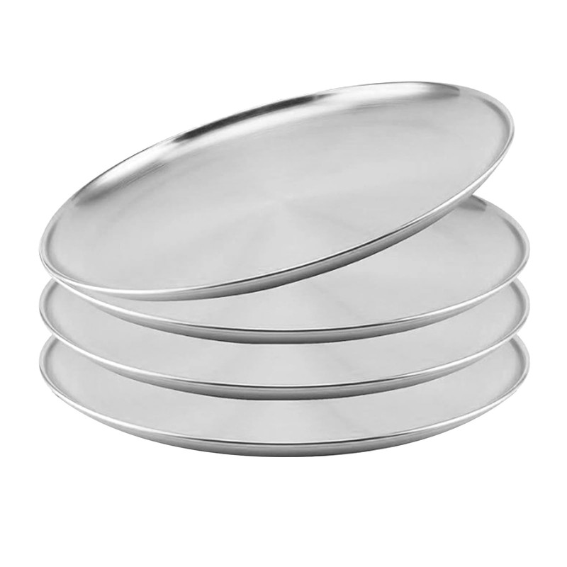 Stainless Steel Plates, 4 Pcs Lightweight Metal Plate, 26cm Unbreakable Dinner Dishes Plates Set for Everyday Use, Non-Toxin Dishwasher Safe BPA Free and Healthy