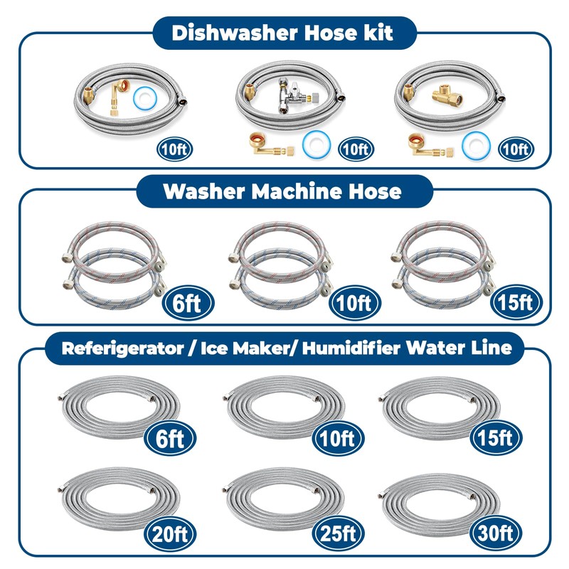 - MULTIPLE APPLICATIONS:The ice maker water line with 1/4" Comp conntor is perfect for connecting 1/4" Comp outlet tee or ice maker outlet box to ice maker,refrigerator,humidifer,water fountain,drinking water faucet and more. Notably, this stainless steel braided refrigerator water line is compatible with all major refrigerator and ice maker brands such as Samsung, GE, LG, Whirlpool, Frigidaire, etc.