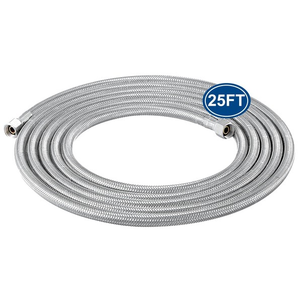 Stainless Steel Refrigerator Water Line - 25 FT PEX Inner Hose Ice Maker Water line,Food Grade Fridge Water Hose with 1/4 Inch Compression Connector for Potable Drinking Water and Humidifier