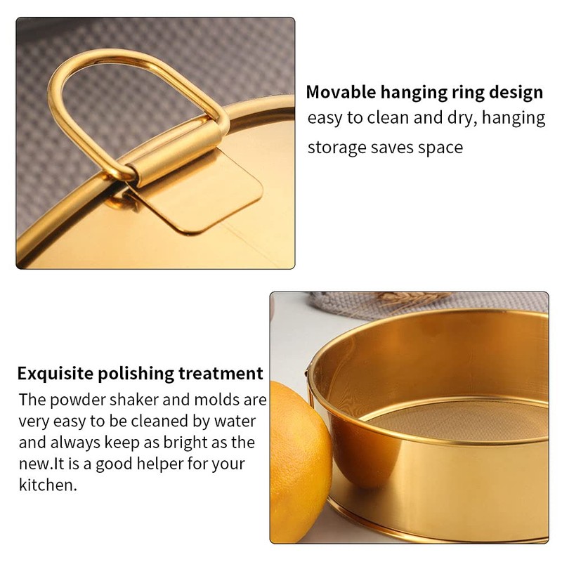- Easy to Clean: Stainless steel round sifter is easy to clean.The powder shaker and molds are very easy to be cleaned by water,and always keep as bright as the new. It is a good helper for your kitchen.