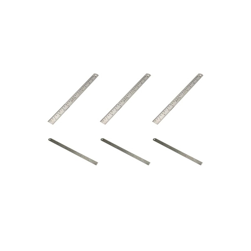 This versatile set of stainless steel rulers is a must-have for any workshop, office, or classroom. With 3 rulers measuring 12 inches and 3 rulers measuring 6 inches, you'll have the perfect tool for all your measuring needs. The flexible metal construction allows for easy measurement of curved surfaces, while the dual inch and centimeter markings provide precision and convenience. Crafted from durable stainless steel, these rulers are built to withstand the rigors of daily use. Whether you're a carpenter, artist, or student, this 6-piece set offers reliable and accurate measurements every time. Keep one at your workbench, one in your toolbox, and extras on hand for all your projects. With their sleek design and rust-resistant finish, these rulers are both functional and stylish. Upgrade your measuring tools today with this high-quality stainless steel ruler set.
