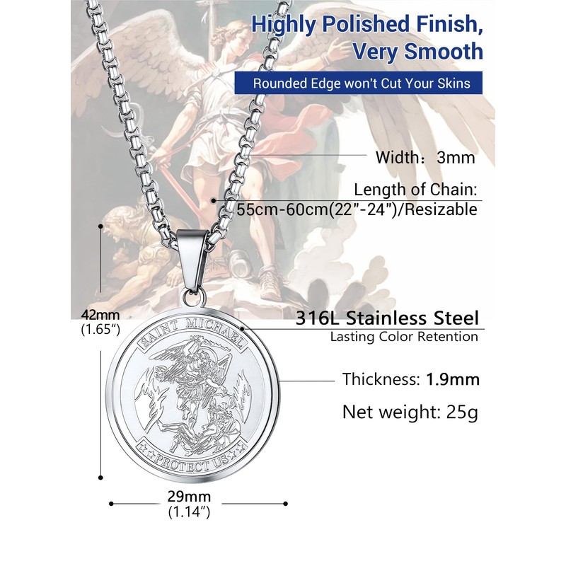 Stainless Steel Saint Michael Necklace Catholic Religious Jewelry Women Men St Michael Archangel Pendant
