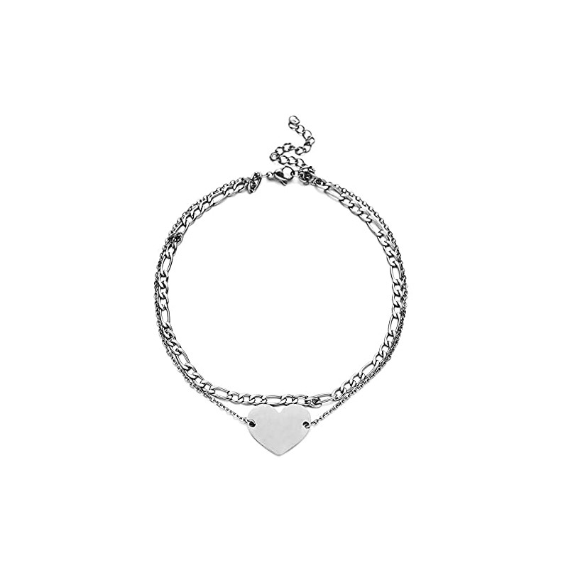 Stainless Steel Sequin Wheat Ears Anklet Double Layer Pearl Chain Love Pendant Anklet Bracelet Beach Square Chain Heart Jewelry for Women, Stainless Steel