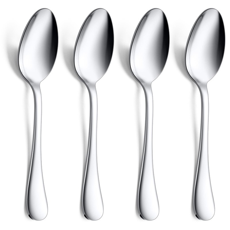 Stainless Steel Serving Spoons, E-far 4-Piece Metal Solid Spoons Hostess Serving Utensils Tablespoons Set for Catering Buffet Party Kitchen Restaurant, Dishwasher Safe