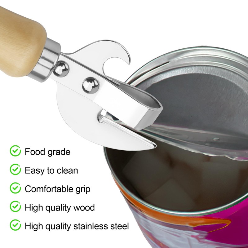 - Ergonomic Wooden Handle for Comfort: Designed with a contoured wooden knob and smooth-grip handle, this tin opener provides comfortable leverage for effortless turning. Ideal for people with arthritis or reduced hand strength during food prep