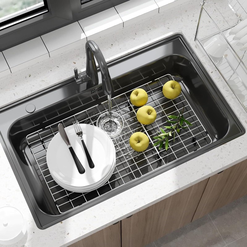 - Multifunctional Kitchen Sink Grates Stainless Steel: This sink rack for bottom of sink can not only protect the kitchen sink, but also achieve more purposes. Use it to dry the plate, thaw food, and even be used as a cooling rack. This multifunctional sink grid enhances your kitchen work space