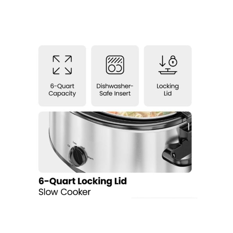 - Capacious Design: With a 6-quart capacity, this slow cooker can serve up to 6 or more people, making it perfect for family meals or gatherings.