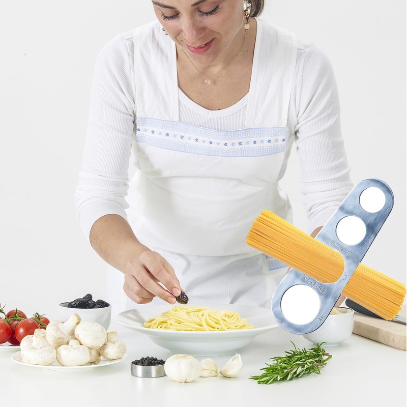• This pasta measuring tool offers single, double, triple, or quadruple servings for the perfect portion. It measures dried pasta accurately, preventing waste, and works well with all noodle types.