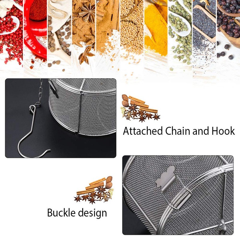 - Easy to use: the chain and hooks on the cover can be hung on the wall or store it on the cupboard. Ideal for use in pots and pans to infuse seasoning into cooked food.