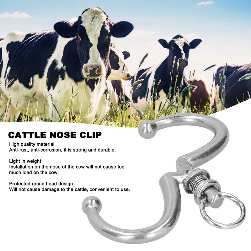 1、Compared with the traditional ring, it can be used without perforating the nose, which is more humanize. 2、Light in weight, installation on the nose of the cow will not cause too much load on the cow. 3、The left and right jaws are balls, which will not cause damage to the cattle, convenient to use. 4、Spring loaded type for easy to operate, the cattle nose plier is a practical accessory for farm use. 5、Made of high quality stainless steel, anti rust, anti corrosion, it is strong.