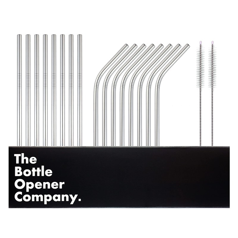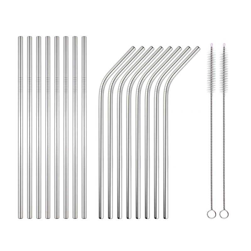 - The set consists of 16 straws - 8 straight and 8 curved - as well as 2 cleaning brushes.