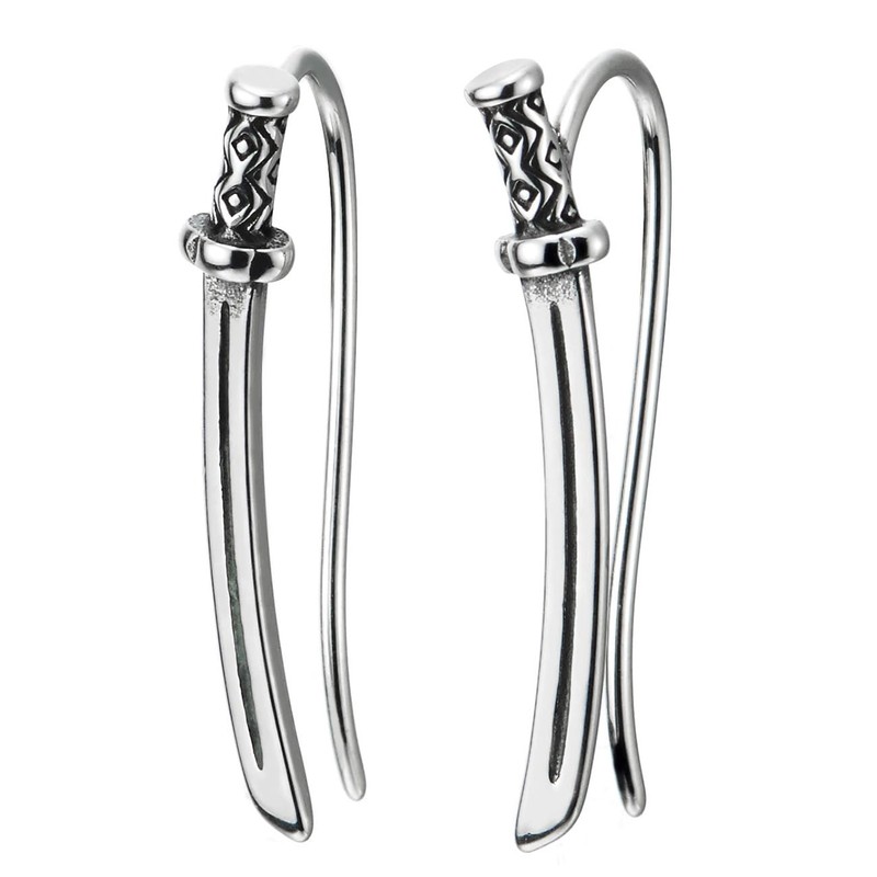- Stainless Steel Sword Stud Earrings, Hook Earrings for Men, Drop Dangle