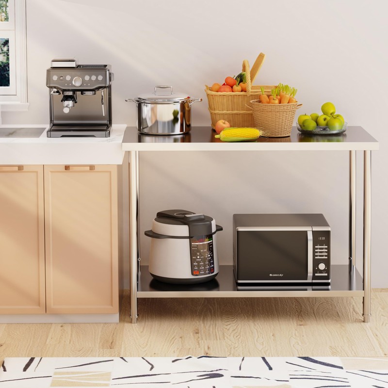 - 💪 Premium Material Quality: Our Stainless Steel Work Table is constructed from top-grade stainless steel, featuring a surface drawing treatment for enhanced durability and corrosion resistance. This professional-grade design offers a spacious and hygienic surface for all your food prep needs.