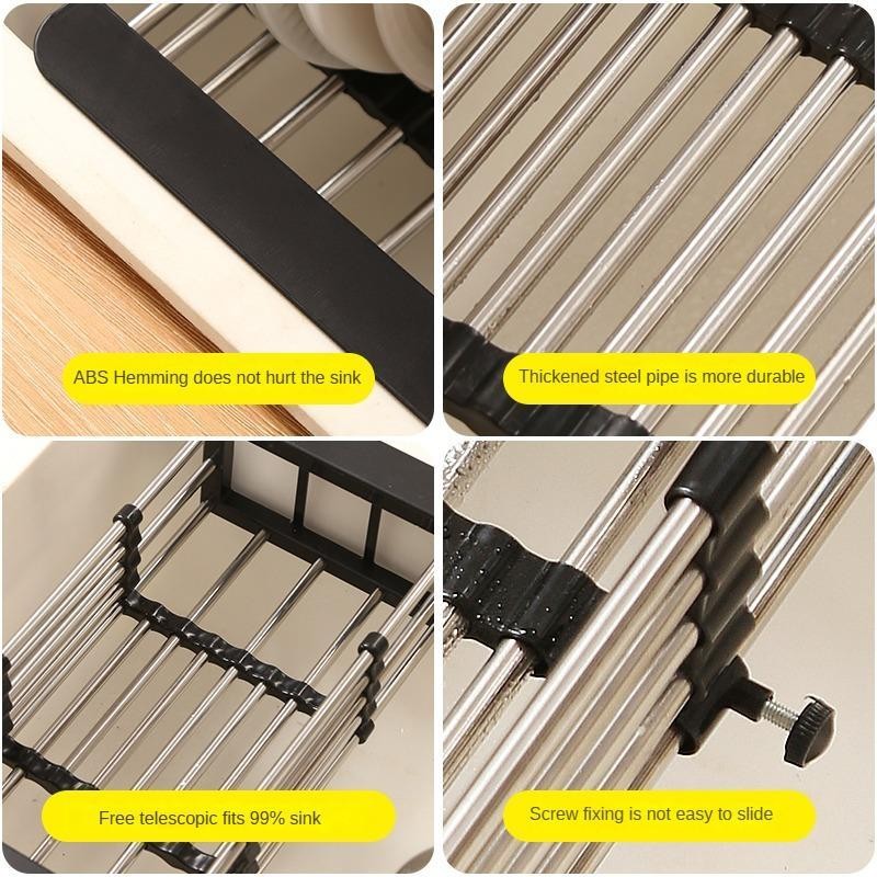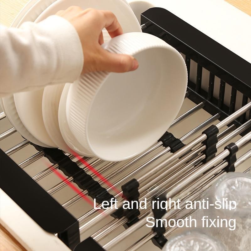 Stainless Steel Telescopic Kitchen Storage Rack Retractable Dish Drying Rack Space Saving Rust Resistant Drainer Sink Dish Organizer 5-10kg Capacity:_Small size - Grey