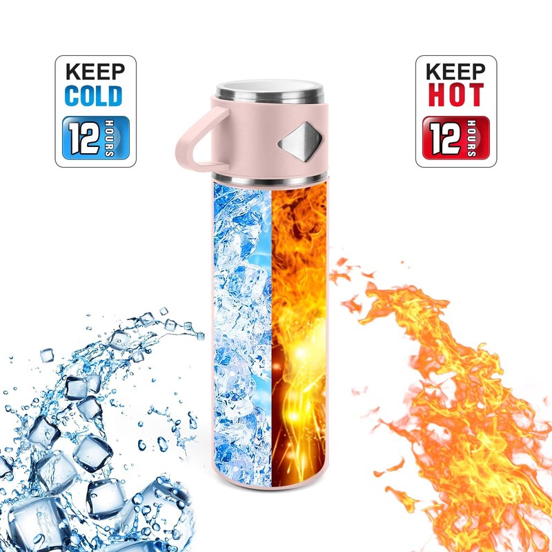 Stainless Steel Thermo 700ml/23.7oz Vacuum Insulated Bottle with Cup for Coffee Hot drink and Cold drink water flask.(Pink,Single)