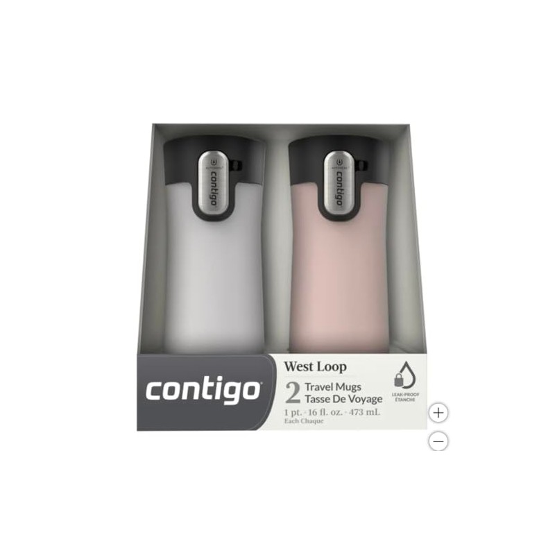 - Contigo AUTOSEAL West Loop Travel Mug: Stainless Steel, 16 oz, 2-Pack in Off-White and Peach