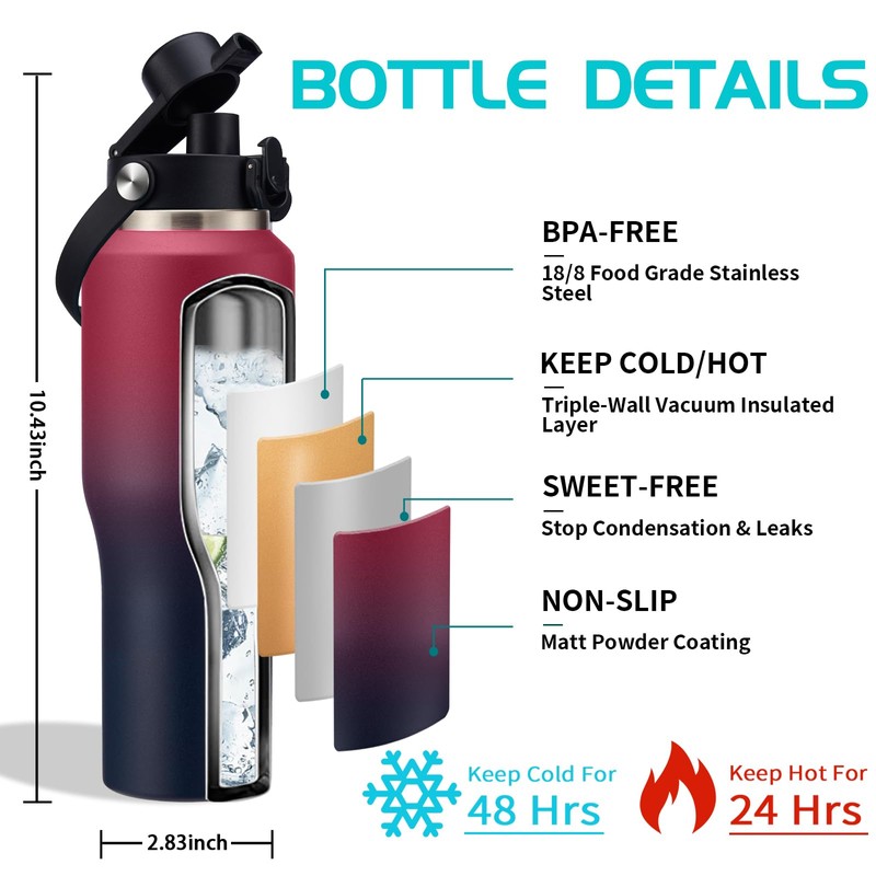 - √ DOUBLE INSULATION & PREMIUM MATERIAL : The double-wall vacuum insulated water tumbler, keeps your drink COLD for up to 48 hours, and HOT for up to 24 hours, make sure your every sip is the feeling you want. The sturdy kitchen-grade 18/8 stainless steel makes insulated cups sweat-free, unbreakable, well made for long lasting.