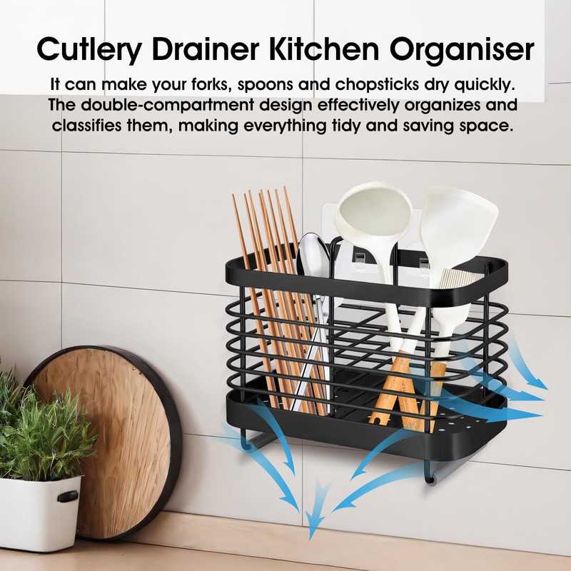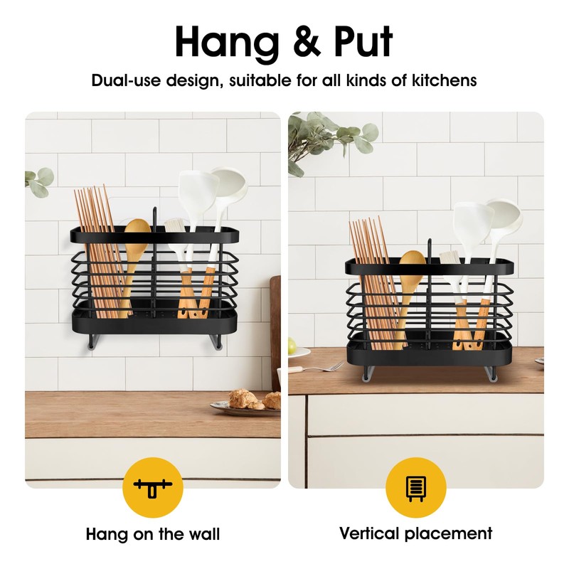 • [‌360° Ventilated Drainage System]: Dual-layer hollow design on sides and base accelerates airflow, drying wet utensils 40% faster than traditional models‌.It can keep chopsticks and metal cutlery dry, even in high-humidity climate.