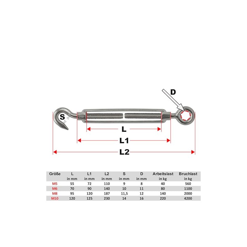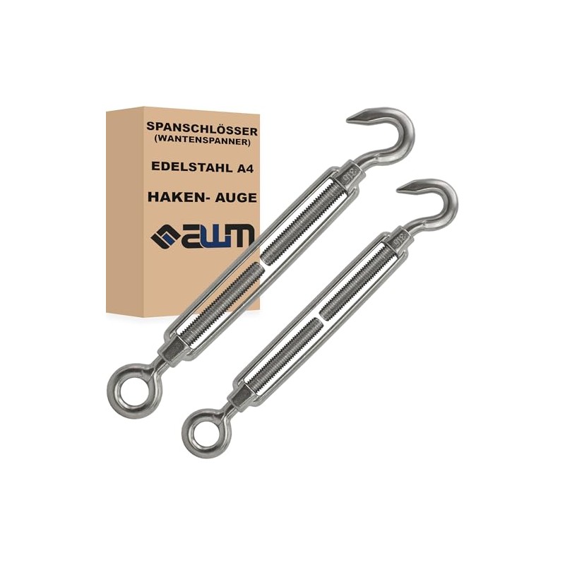 Stainless Steel VA4 Rope Tensioner Wire Rope Turnbuckle Wire Tensioner Tensioner Tensioner - Pack of 2 (Hook x Eye (Open) - M8)