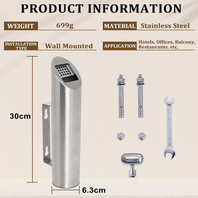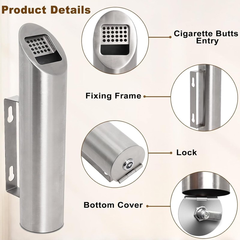 - 【High-quality material】: wall ashtrays are made of high-quality stainless steel, which is not only stable and durable, but also fire and moisture resistant and a long time